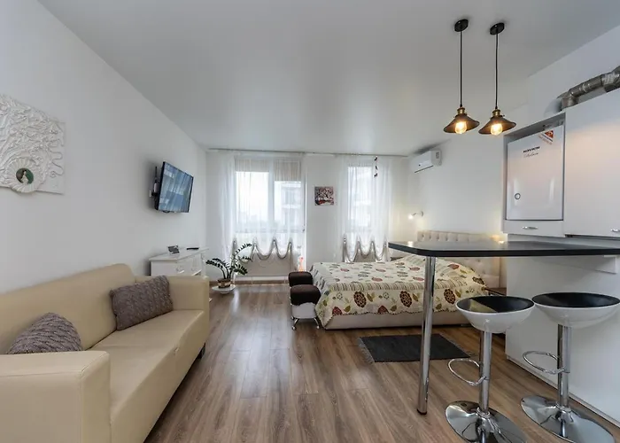 Насолоджуйтесь повністю обладнаною кухнею у помешканні, що укомплектована електрочайником, холодильником і скляним посудом для вашої зручності. Апартаменти розташовані за 20 км від Міжнародного аеропорту "Київ".
